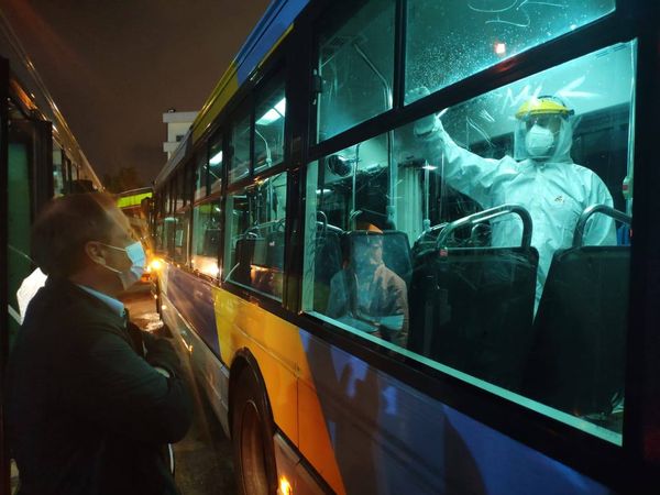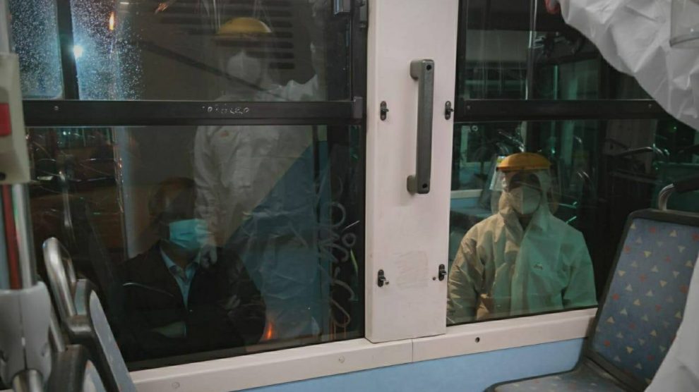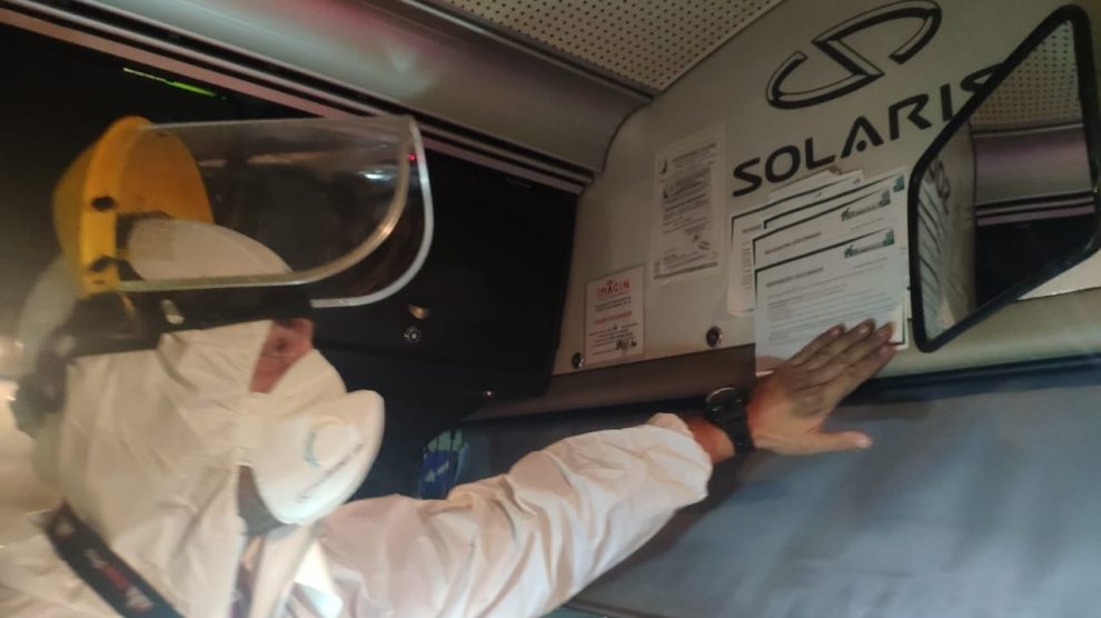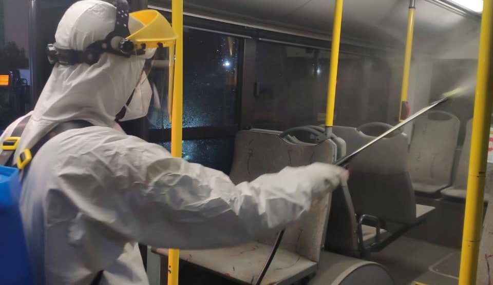 Ο υπουργός Υποδομών και Μεταφορών βρέθηκε αργά χθες το βράδυ στο αμαξοστάσιο της ΟΣΥ, όπου μετά το πέρας της βάρδιας γίνονται απολυμάνσεις σε όλα τα λεωφορεία για τον κορωνοϊό, ώστε οι επιβάτες να μπορούν να κινηθούν με ασφάλεια.