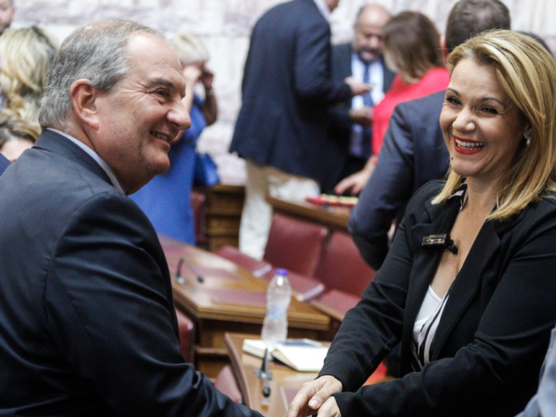Πριν την έναρξη της διαδικασίας, πολλοί βουλευτές πήγαν να καλημερίσουν τον πρώην πρωθυπουργό Κώστα Καραμανλή, ενώ ιδιαίτερα χαμογελαστή ήταν η Όλγα Κεφαλογιάννη.