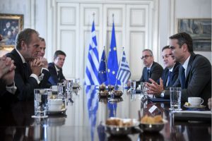 Ο πρωθυπουργός Κυριάκος Μητσοτάκης συναντήθηκε σήμερα με τον πρόεδρο του Ευρωπαϊκού Συμβουλίου, Ντόναλντ Τούσκ στο Μέγαρο Μαξίμου. Σύμφωνα με πληροφορίες οι...